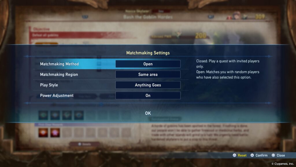 – Matchmaking Method: “Open” will connect you with random players around the region you choose, while “Closed” will limit the game to invited friends in your party only.